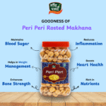 Crunchy and spicy Peri Peri Roasted Makhana, roasted in pure desi ghee. A healthy, gluten-free snack rich in protein and fibre.