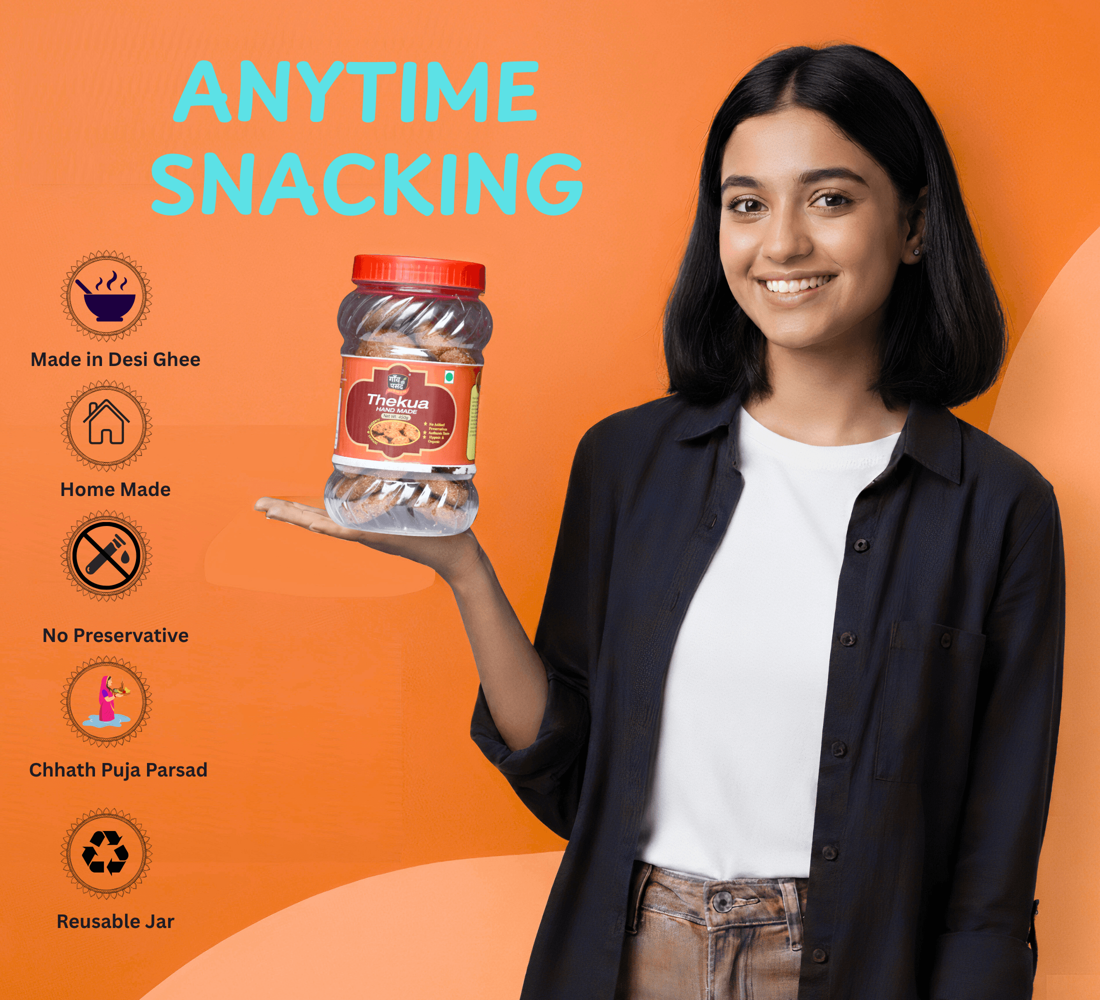 Bring home the authentic taste of tradition with Gaon Ki Pasand Wheat & Jaggery Thekua, a wholesome and delightful snack crafted with love and care. Made using the finest quality whole wheat flour (atta) and pure jaggery (gud), this traditional treat is a perfect combination of health, taste, and nostalgia. Thekua has been a popular festive sweet in Bihar, Jharkhand, and Eastern Uttar Pradesh, especially during Chhath Puja, but its rich flavor and crunchy texture make it a year-round favorite.